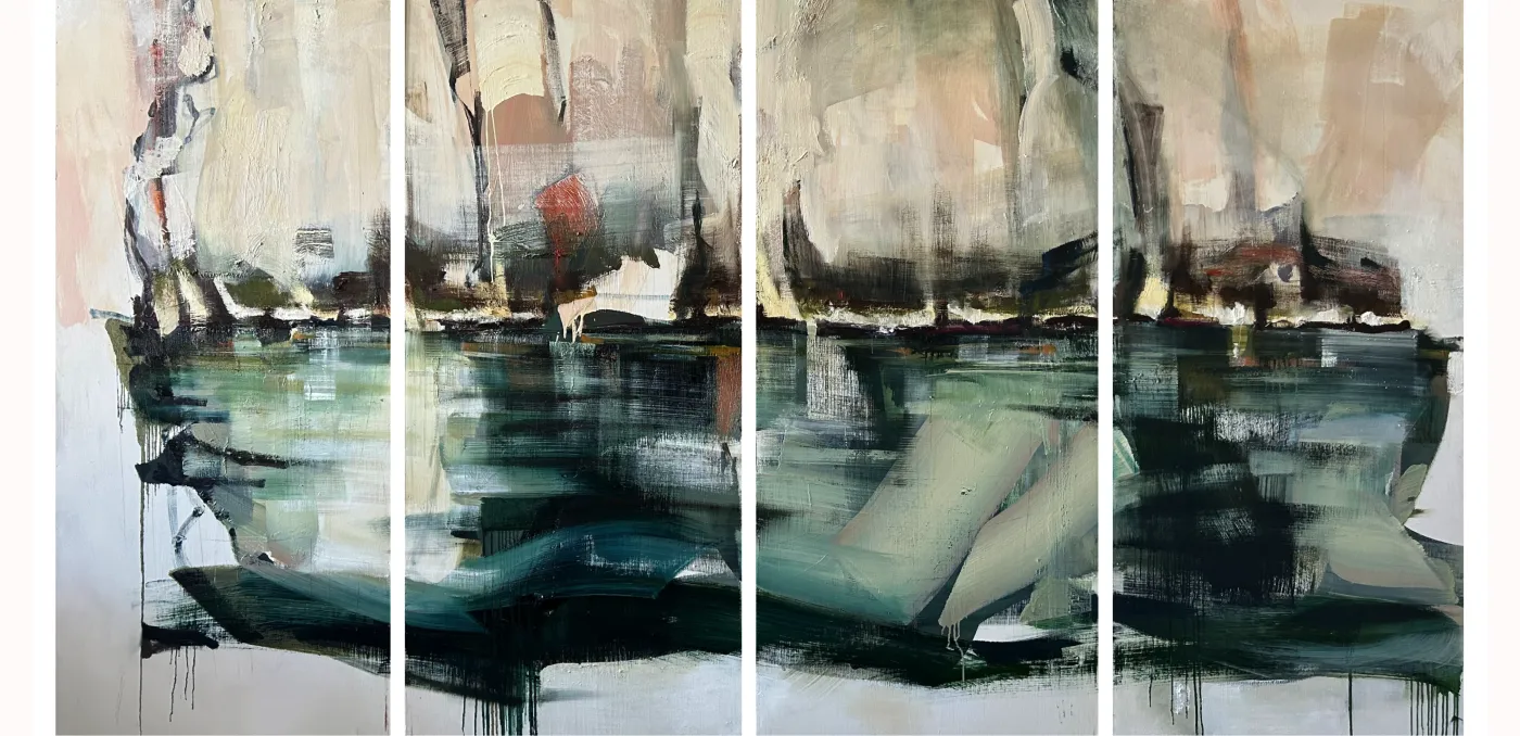 J’ai commencé à peindre les Calanques il y a 10 ans. Comme décor d’abord, comme l’endroit qui me rappelle mon enfance, un cadre où j’ai souvent fait poser mes modèles. Et puis en 2020 on est allé dans les Calanques par la mer, en voilier. Pas n’importe quel voilier, le Don du Vent, pas n’importe quand, juste après le confinement. L’émotion a été d’autant plus forte que nous sortions d’une période infiniment difficile. Ce fut comme une révélation : ces falaises, l’impression d’être minuscule devant ces géants de calcaire. Les failles, les différentes couleurs de la pierre, l’échelle si inhabituelle et puis ces variantes infinies de bleu. Du turquoise au noir en passant par l’outre-mer, l’émeraude, le bleu de Prusse. J’ai pris des centaines de photos, lu tout ce que j’ai pu, croqué, picniqué, promené, observé, navigué, bronzé Calanques depuis 5 ans. Et me voilà dans l’atelier : moi, mes pinceaux, mes toiles et mes bleus. Les Calanques comme sujet. - Vous pourrez découvrir la série « Les Calanques » à l’automne 2026. -